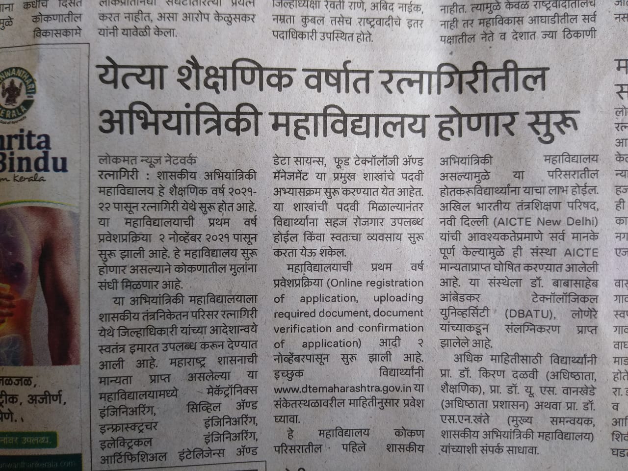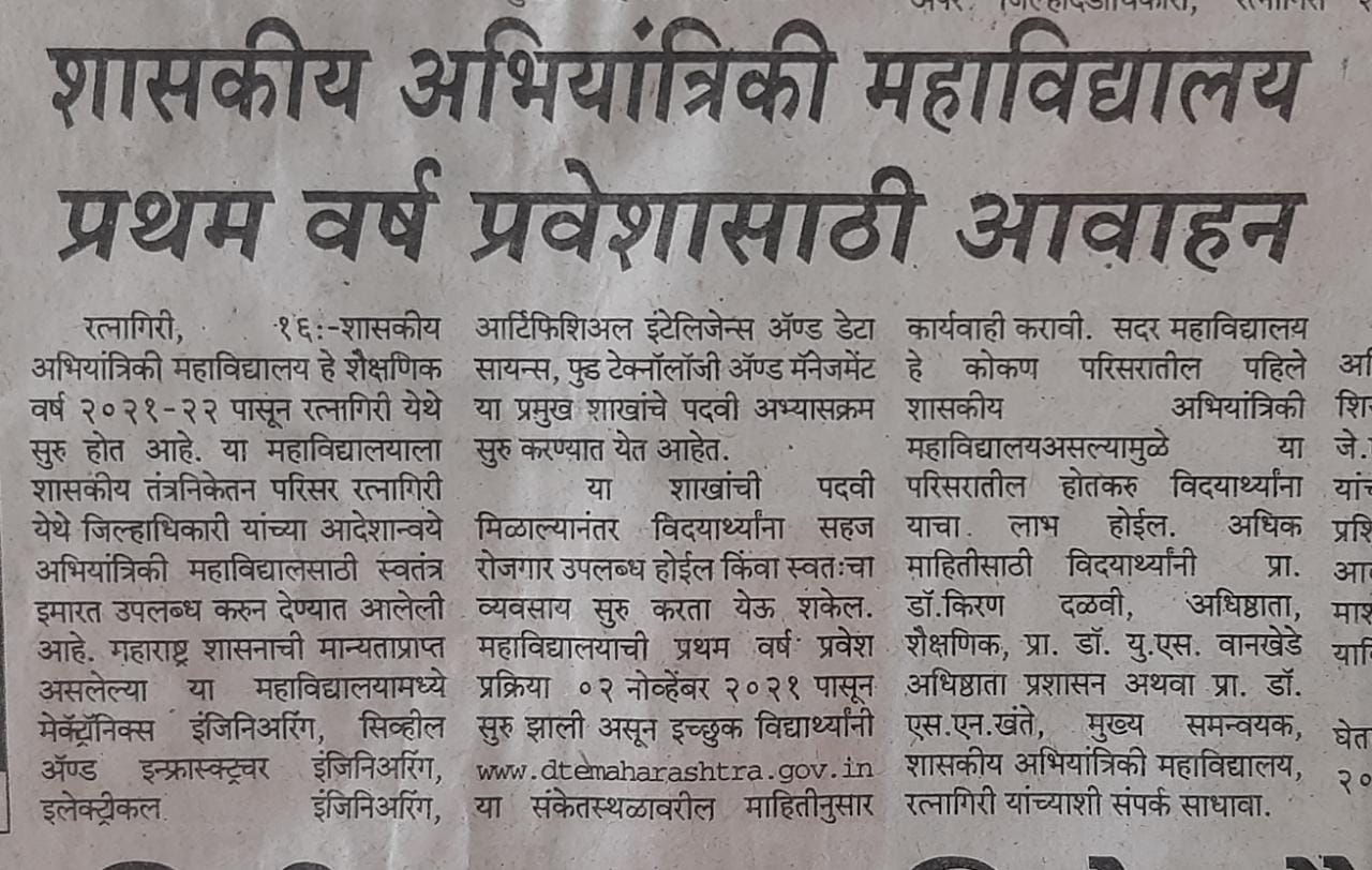 Government College of Engineering, Ratnagiri, Near Thiba palace Road, Ratnagiri.